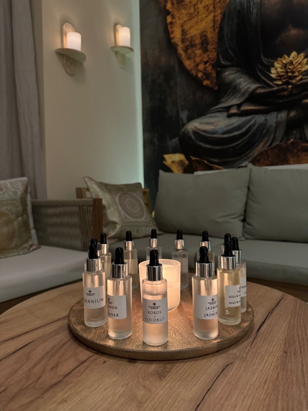 Twoje zmysły są dla nas ważne. Podczas masażu używamy wyłącznie naturalnych olejów aromatycznych najwyższej klasy, a po zakończonym zabiegu zapraszamy na chwilę wyciszenia przy filiżance tradycyjnej, kojącej herbaty.