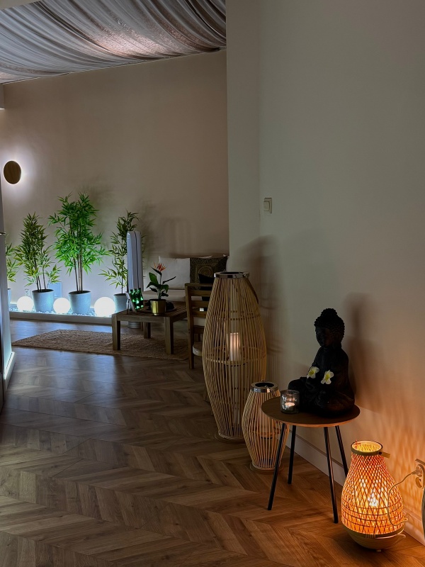 W sercu Inowrocławia stworzyliśmy przestrzeń zainspirowaną wschodnią filozofią Zen. Centralnym punktem naszego salonu jest ogród wypełniony białymi kamieniami i naturalnym bambusem, który zaprasza do wyciszenia jeszcze przed rozpoczęciem masażu. Jasne, eleganckie wnętrza w odcieniach piasku i drewna, nastrojowe światło oraz kojąca aura azjatyckiej estetyki pozwolą Ci odnaleźć wewnętrzny spokój i w pełni przygotować się na spotkanie z tradycyjną sztuką masażu z Tajlandii i Bali.