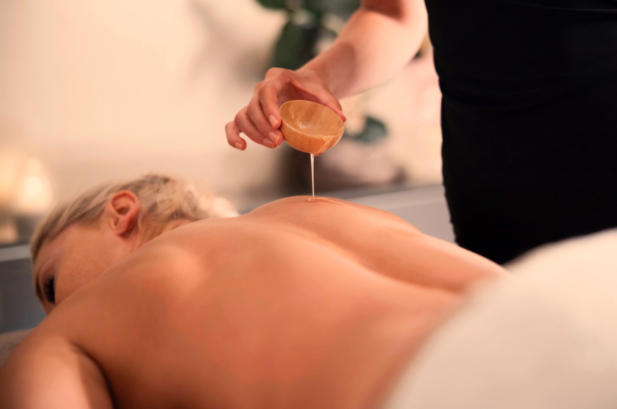 Oil massage is performed using aromatic oils that are thoroughly massaged into the skin.